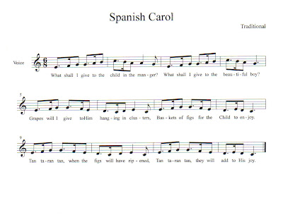 It may be late to teach this song to your class this year, but it is fairly simple and your class will learn it easily. This song works well for a simple presentation at a Christmas concert. One of your students could play the last two lines on a glockenspiel after the class has sung the song.